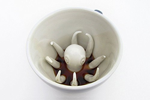 Die Qualität der Keramik fiel sofort positiv auf, robust und fein verarbeitet, versprach sie eine lange Lebensdauer. Als ich meinen Kaffee einfüllte, war der Octopus zunächst nicht zu sehen, doch mit jedem Schluck wurde mehr von der verborgenen Kreatur enthüllt, bis sie in voller Pracht vor mir stand. Dieser Moment, in dem der Octopus zum Vorschein kam, war jedes Mal aufs Neue faszinierend und verlieh dem morgendlichen Kaffeeritual eine ganz besondere Note.
