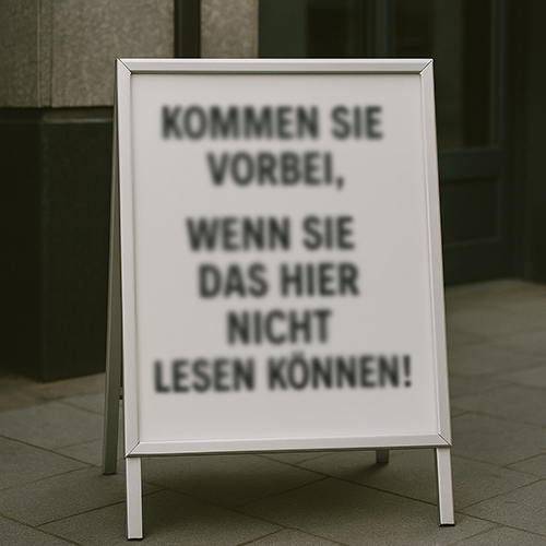 "Kommen Sie vorbei, wenn Sie das hier nicht lesen können!" – Nur blöd, wenn man die Anzeige überhaupt nicht erkennt.