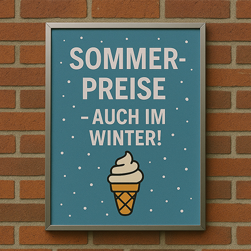 "Sommerpreise – auch im Winter!" – Bei Minusgraden denkt da wohl keiner ans Eis.