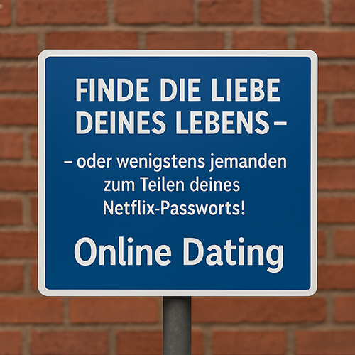 "Finde die Liebe deines Lebens – oder wenigstens jemand zum Teilen deiner Netflix-Passworts!" Ehrlich? Ja. Romantisch? Eher nicht.