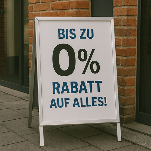 "Bis zu 0 % Rabatt auf alles!" – Klingt verlockend… oder auch nicht.