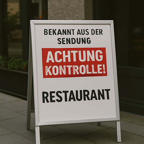 "Bekannt aus der Sendung 'Achtung Kontrolle!'" – Vielleicht nicht die beste Referenz für ein Lokal.